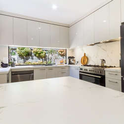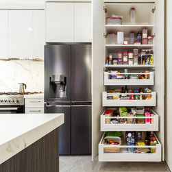 This kitchen is all class! It's smart design and creative layout are exceptional. Our clients will enjoy the practical features and lifestyle benefits of their appliance pantry, in drawer bins, corner solution and more. This kitchen has everything, right where you need it.