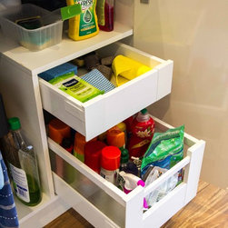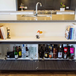 From a boxy, dated, timber kitchen, Corey has completely opened the space, created more storage and given the house a total lift. With the dining table so close, our clients didn’t need seating at the bench which offered the perfect opportunity for more clever storage.