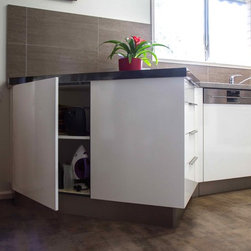 Our clients, Ian and Val, put off the renovation of their kitchen for a long time. But once they finally got started, they couldn’t understand why they waited so long! With such a restricted space, clever storage and layout were important for making this new kitchen functional. Talented designer, Daniel Stelzer, worked with the excited couple to create the beautiful result you see today.