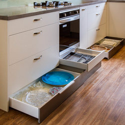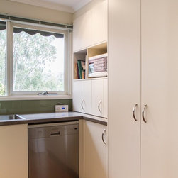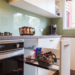 Size doesn’t always matter! Here, you can see a small space has been uniquely transformed to fit this practical and functional kitchen. While you still might not be able to fit 5 people in it, everything is at hand, has its place and, most importantly, can be easily accessed! You’ll even note the use of the kickboard space as drawers to store those awkward items like platters, baking trays and chopping boards. Who knew budget-conscious could still be practical and good looking?!