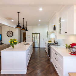 A light-filled, large, traditional style kitchen for our clients in Eltham North. This beautiful space has been specially designed by Corey Johnson to not only add the modern touches to a traditional style but also add a layer of "practical" to the "beautiful".