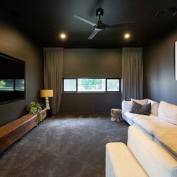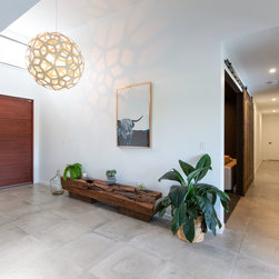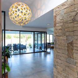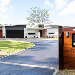 This is a sprawling acreage home with a sophisticated modern interior, designed for a growing family to live and work from home.
