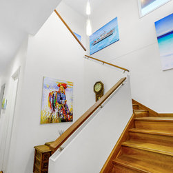 The design features extensive use of strategically located windows to perform 3 key architectural requirements: