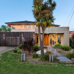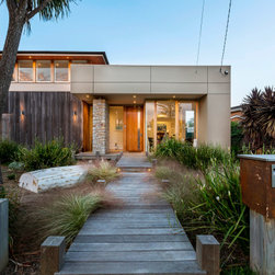 The clients wanted to specifically use a combination of materials that would be suitable for a coastal environment, in terms of aesthetics and practicality. AMG Architects used this palette of materials and finishes to articulate the different parts of the house, reduce bulk and scale, create dynamic interest and a strong coastal identity. Some of the key materials used included: