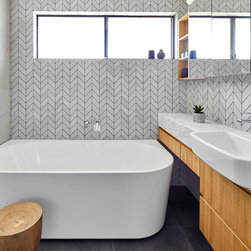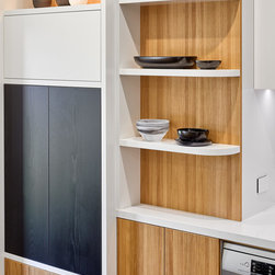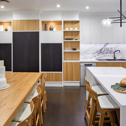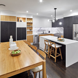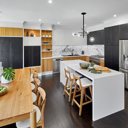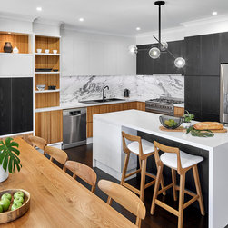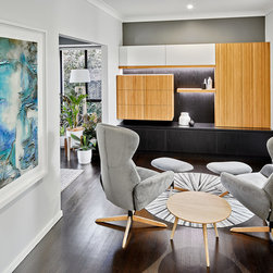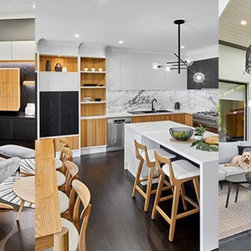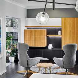 The existing red Jarrah floor was re-stained to allow the colour to work-in with the new scheme and maintain the existing floor. The palette throughout features the client’s choice of charcoal and white tones with warm timber accents. LED lighting features throughout the home.