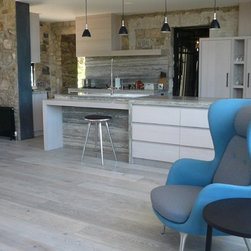 A 1950's stone house built by artisans of the time from reclaimed materials and iconic to the Flinders township received a sympathetic extension bringing warmth and views into everyday living. The use of oak flooring and Concreate were used extensively on this project.