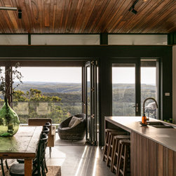 Jakaan Architects & Cory Webb Design collaborated to bring a professional couple’s dream home to life on a breathtaking site atop a sandstone escarpment overlooking the Blue Mountains National Park. The unique location posed significant challenges, including a Flame Zone bushfire rating, requiring close collaboration with a bushfire consultant to ensure compliance with stringent safety requirements while delivering a luxurious and harmonious design.