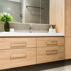 The bathroom of this double brick home in Forrest was in desperate need of a make over! As this was going to be their "forever home" the client needed the bathroom to be practical, beautiful, and spacious. The design that evolved after consulting with the client meant a huge change to the existing floor plan. By removing two adjacent cupboards we were able to create a powder room and a bigger bathroom.