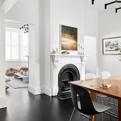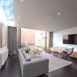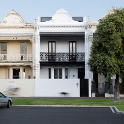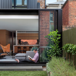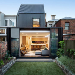 The project transforms a small Victorian terrace into a three-storey contemporary family home with three bedrooms and a variety of internal and living zones. The retained heritage front shows very little of the additions. The new built form is clothed in a stealthy dark skin, minimising its formal presence.