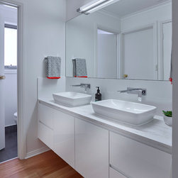 Here is another freshly renovated bathroom & powder room built by Brilliant SA. The removal of one wall was done to create a better open space. The existing waste locations were retained. This delightful upgrade to these rooms has created a fresh and modern look to this beautiful home.