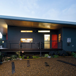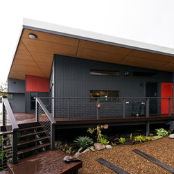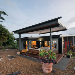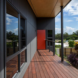 This residence reflects the same angular lines of the Glasshouse Mountains. Natural materials of the 'tin and timber' principle have been used with dramatic effect to complement the location.
