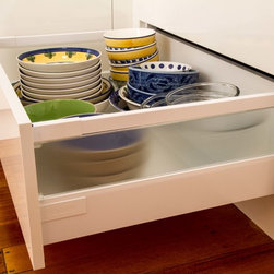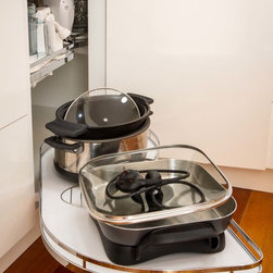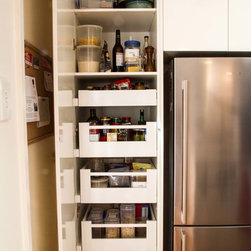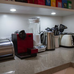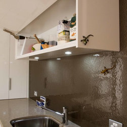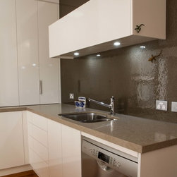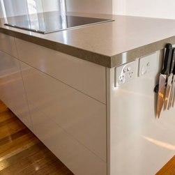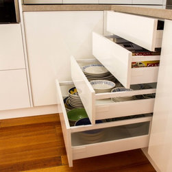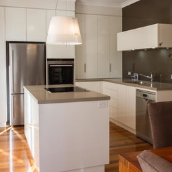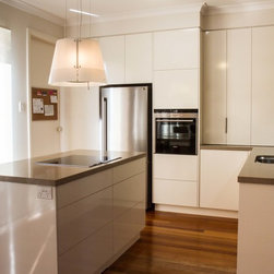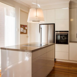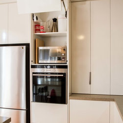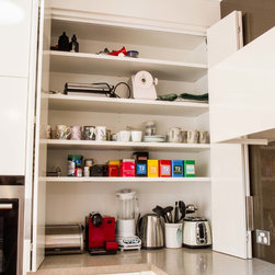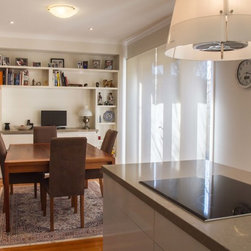 This small kitchen needed some smart solutions to make the most of the space available. Our designer, Corey, has designed the cabinetry to fit into this kitchen so perfectly that there is absolutely no wasted space. Clients, David & Hazel, also wanted storage created for their dining room wall. Corey designed this to cleverly compliment the kitchen styling but not become too heavy in the small space.