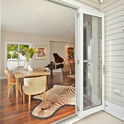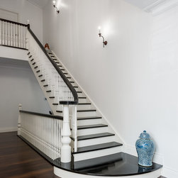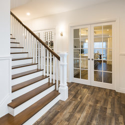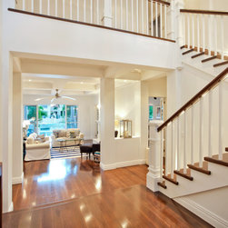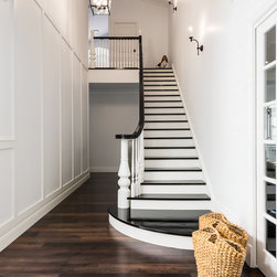 Timber tiled floors and treads on staircase. Custom mitred edges on treads. Great for beachfront living.