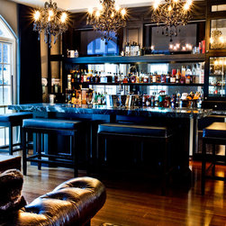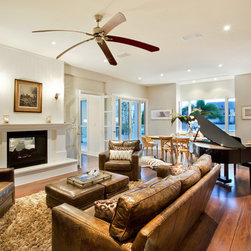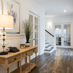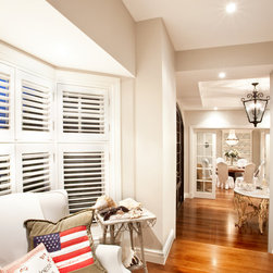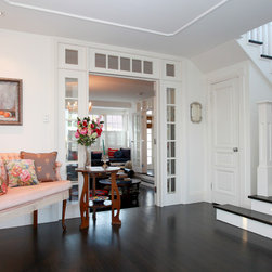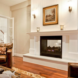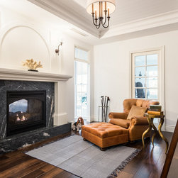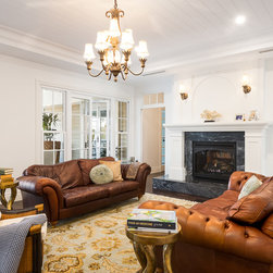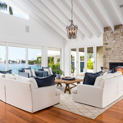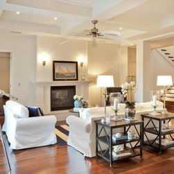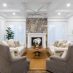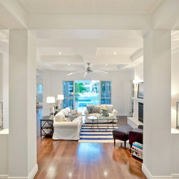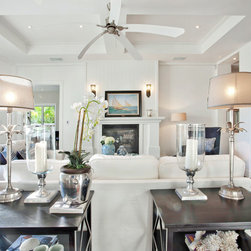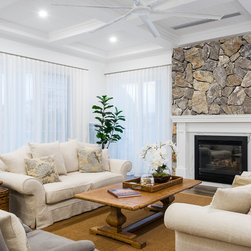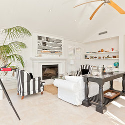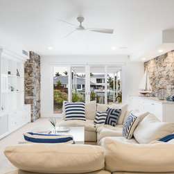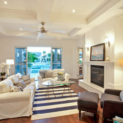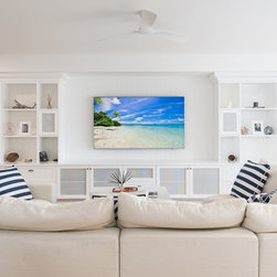 Custom cabinetry for large TV in Hamptons inspired Beachfront apartment.