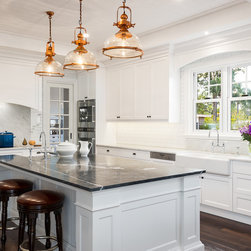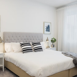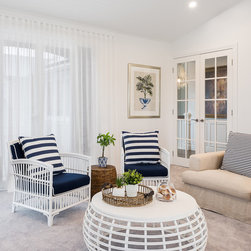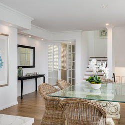 Hamptons Coastal beachfront apartment living. Marble counters and fully integrated fridge.