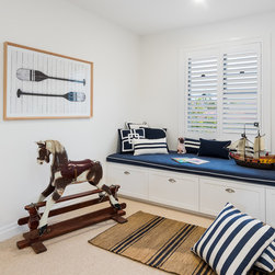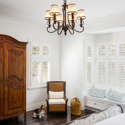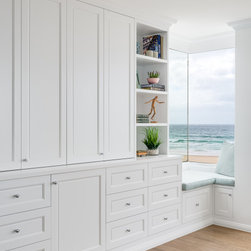 Concealed TV in custom cabinetry in beachfront apartment. Special reading nook.