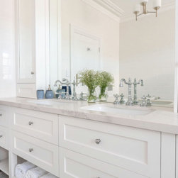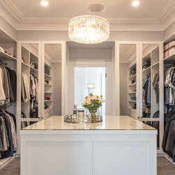 Hamptons Shaker Design | Open Island Shelving | Large Walk-In Wardrobe