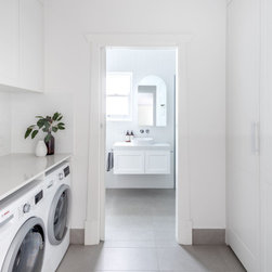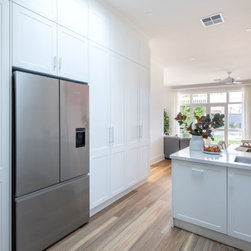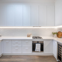 Cabinetry: Shaker-style cabinetry of Polytec Thermo Laminated ‘Oberon’ profile with Lo & Co Kintore Handles.