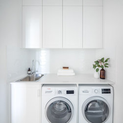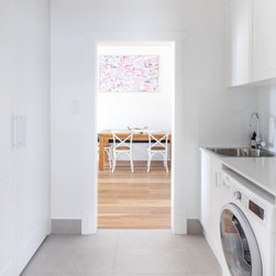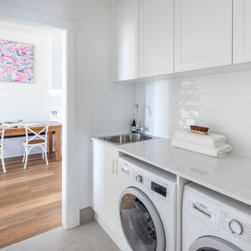 Feature tiles: Italia Ceramics white gloss Subway tiles for the laundry splashback.