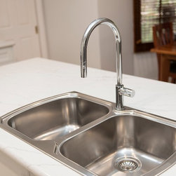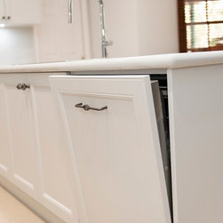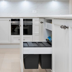 The clean lines of the design adds to the elegant simplicity of this kitchen, whilst attention to practical needs, such as discreet waste disposal and other accessories, make this kitchen a joy to work in.
