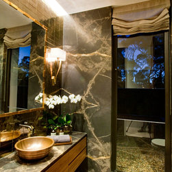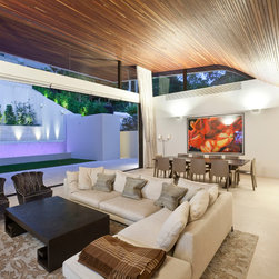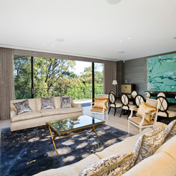 This massive thirty eight room grand residence includes a cinema, wine room, panic room and multiple bedrooms and living areas set over four levels. After inheriting an approved development application from Sydesign, The Quinlan Group and Darryl Gordon Design undertook extensive external modifications, internal architecture and interior design, creating a series of spaces of the highest possible quality and finish.
