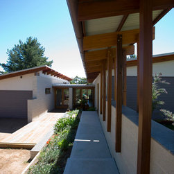 Located on a working farm in the Southern Highlands the house is a modestly sized, climatically responsive home. As a dual occupancy the house was required to be linked to the existing house on the site occupied by the owners adult son and family. This comfortable home for enjoying semi-retirement provides a model for increased densities on similar properties and advocates a return to a family life that is cross generational.