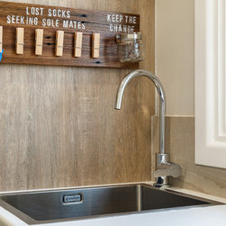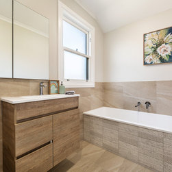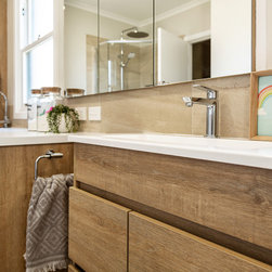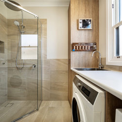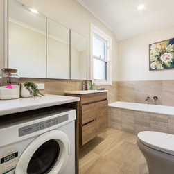The brief for this project was to combine laundry, bathroom, and toilet into one modest, narrow space. Planning was carefully considered to allow good access to each fixture.