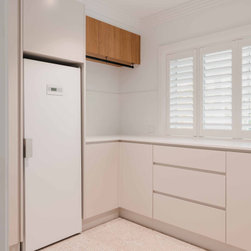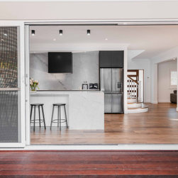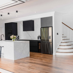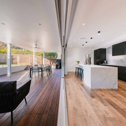 Despite its relatively small layout, the renovation and first-floor addition makes it seem like a brand-new home, built from the ground up. The renovation was executed in a quality manner, and using the existing subfloor of the under garage and storage areas helped keep the project cost economical. The final design is a harmonious blend of simplicity and elegance. The subtle use of natural materials such as stone and timber adds a touch of earthiness to the clean and modern facade. This home stands out prominently in its streetscape and is a testament to the success of a well-executed renovation project.