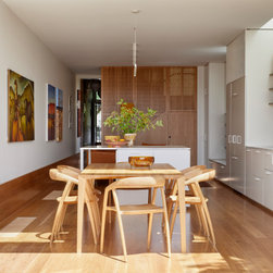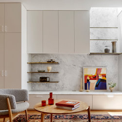 For us, it is also a project with an unusual history. This dual-natured renovation evolved through the ownership of two separate clients. Originally intended to accommodate the needs of a young family of four, we shifted gears at the eleventh hour and adapted a thoroughly resolved design solution to the needs of only two. From a young, nuclear family to a blended adult one, our design solution was put to a test of flexibility.