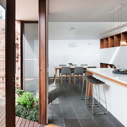 This double fronted Victorian in North Fitzroy has a north-south block. Bedrooms at the front enjoy light and warmth; southern living rooms are dark and cold. Our brief was to bring in sunlight and expand the home. We needed to find the right balance between internal and external in restricted space.