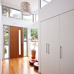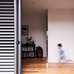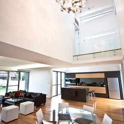 The Johnson Residence is a new four bedroom contemporary family home. A solid masonry base with strong interlocking outdoor connections grounds the building. The solid base is contrasted against a cantilevered lightweight upper level with floating roofs.