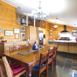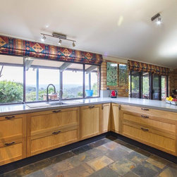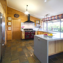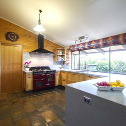For a lot of our clients, a kitchen renovation is something they’ve been dreaming of for years and this is certainly true for those of this week’s feature kitchen. It all started with a Falcon. A Falcon oven, that is. For about a decade, Tracy has carried a picture of the Falcon oven she has wanted to put in her new kitchen and this year, that dream has come true! The family have since named it “Doris” and in its warm, burgundy tones, looks perfect in its new environment. Chris & Tracy’s original 1970’s home is filled with all the typical 70’s features; slate floors, timber panelling and exposed brick. But they love them and given their location, it works perfectly. Kitchen Designer, John Crooks, has created a soft, eclectic and yet organic feel for this kitchen in the trees.