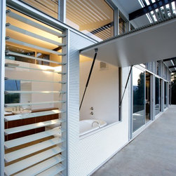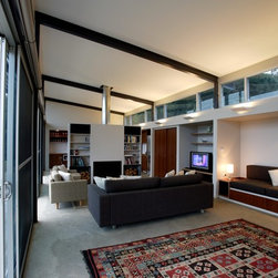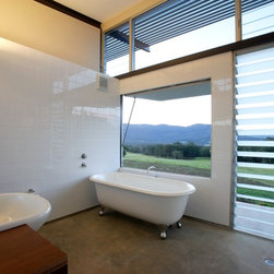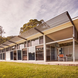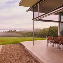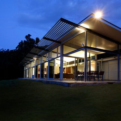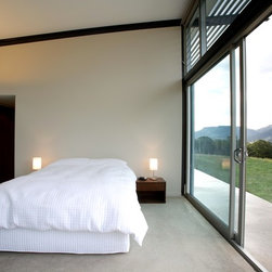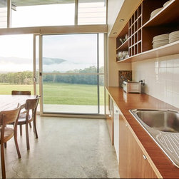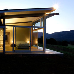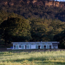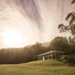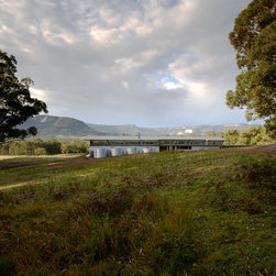 This is a simple weekend retreat that responds to the local climate, the immediate site and the surrounding landscape. The site is 65 hectares and is surrounded by steep sandstone escarpments to the south and views down the valley to the North. There were no existing services on the site.