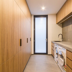 This stunning new home in Kew makes cabinetry the hero throughout. With internal doors that match the cabinetry, each room flows effortlessly from one space to another.