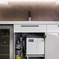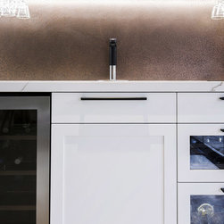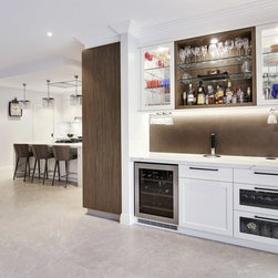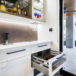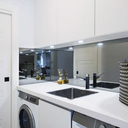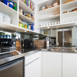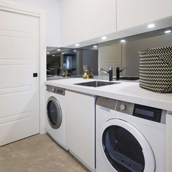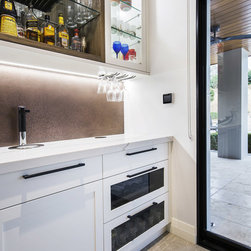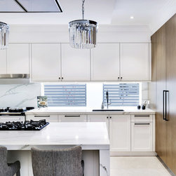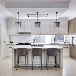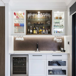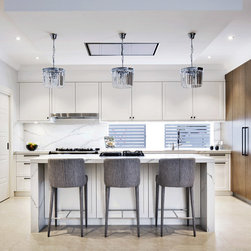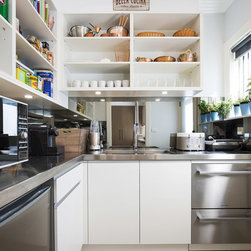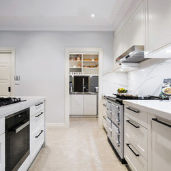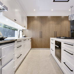 Old meets new in this eclectic white and timber kitchen, with adjoining laundry, bar and scullery.