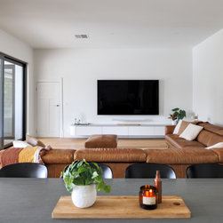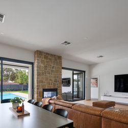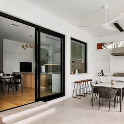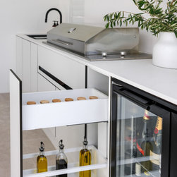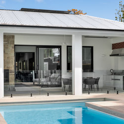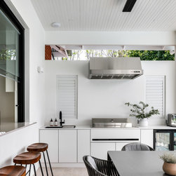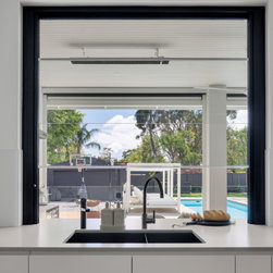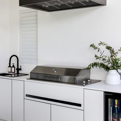 Kitchen, living room and alfresco with a contemporary style and top-of-the-line appliances.