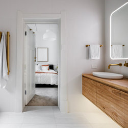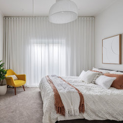 Master bedroom and ensuite with bespoke cabinetry and natural textures.