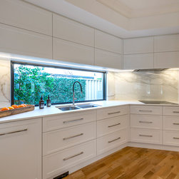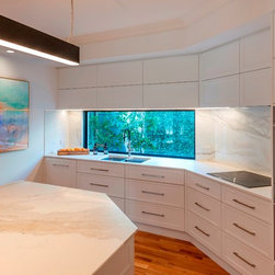 The Neolith tops and splashback from CDK stone has really complimented the Marble Calacatta island bench top.