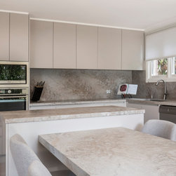 Kitchen with Caesarstone Excava Benchtop, Splashback and Island