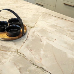 Kitchen with Cosentino Sensa Vancouver Quartzite, curves, bronze & timber featur