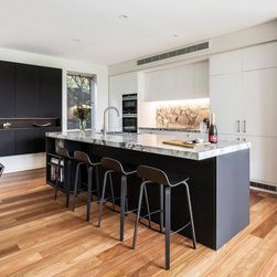 Black and white with timber floors is always a great combo, as is beautifully demonstrated in this contemporary style kitchen.