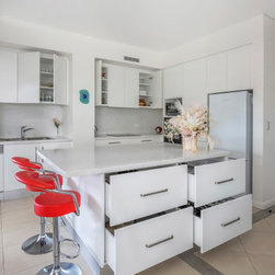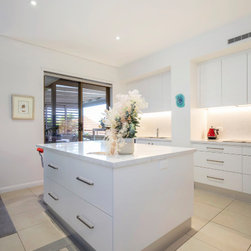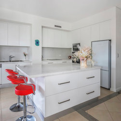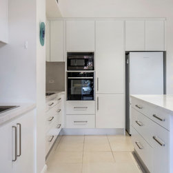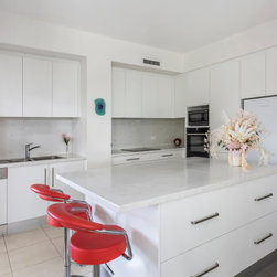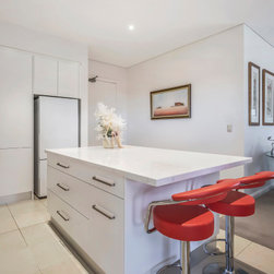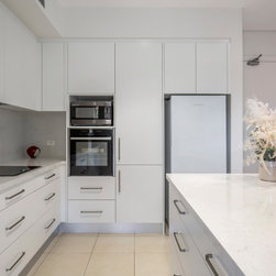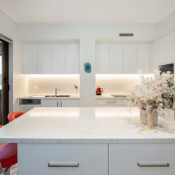 One of our many happy clients returned to us when she moved to this apartment, which required a renovation to update the kitchen and bathrooms and add a built-in office and bookcase unit. This necessitated some structural work to create the ideal space for the kitchen. Thanks to our building license, Nouvelle was able to undertake all aspects of the renovation. As our designers have the knowledge and experience to able to recommend optimal design options, as well as the back up of licensed professionals, clients are assured of receiving well considered advice and recommendations that will best utilise their space.
