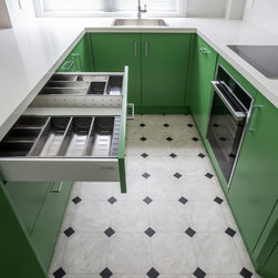 Kitchen with Wisper White and Blade Green Poly cupboards