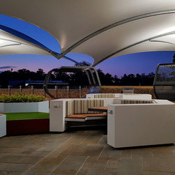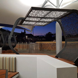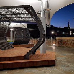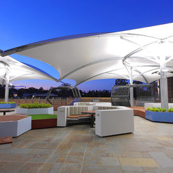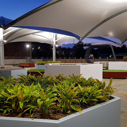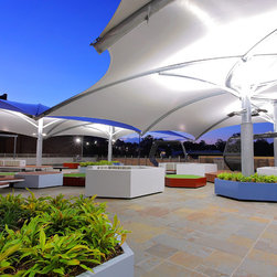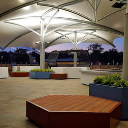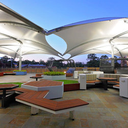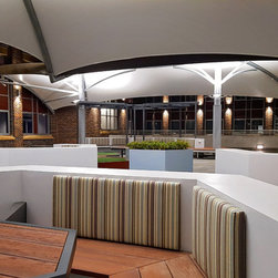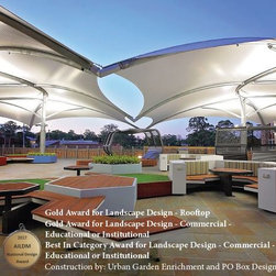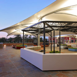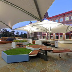 The upper balcony of this established school is over 1000m² of exposed hot paving and offers very little reason for students, parents and staff to congregate in this area. So staff and community sought a new vision for this important space, a vision that would symbolise and emulate the transition that the boys will soon be making to tertiary campus style facilities and be multi purposeful.