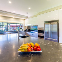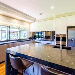 The stone from Victoria Stone Gallery has a leathered finish which adds a beautiful tactile feel to the space.