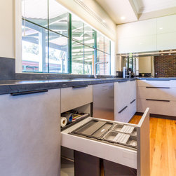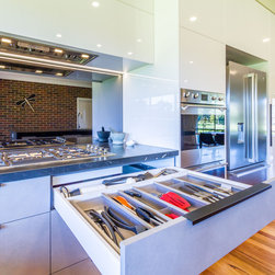 Light and shade, warm and cool. This kitchen is perfectly balanced.