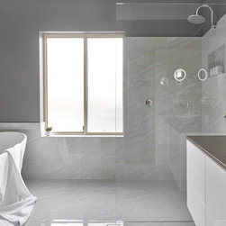 The brief was to update the bathroom to become a space of luxury, the clients were after a ‘transitional’ design, a blend between traditional and modern. Minimal wall tiling height was requested to add character using a feature paint colour above tiling. Easy cleaning fixtures and fittings and large format tiles were a must have as their original small decorative tiles were horrible to keep clean.