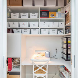 The client, being a keen seamstress, also has her own sewing room, perfectly accoutred for her needs, neatly tucked away behind double sliding doors.