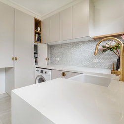Fast forward to these light, bright, inspired rooms which are a pleasure to be in and use daily. GDP Interior Design worked closely with the client to achieve a layout that considers every possible usage. Instead of a dead end laundry, it is now a thoroughfare from interior to alfresco space - and one that you wouldn't mind your guests seeing!