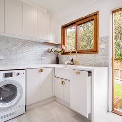 The previous utility rooms in this Melbourne family home were not pleasant for daily chores such as washing and bathing. They were dark, outdated, and had very little structure.